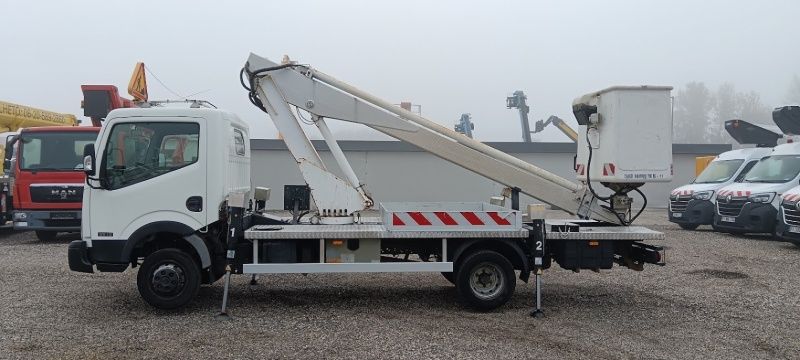 Nissan Cabstar Multitel 160 ALU DS kosaras autó 16 m gémkinyúlással eladó. Azonnal munkára fogható! Magyar papírokkal és friss emelővizsgával!