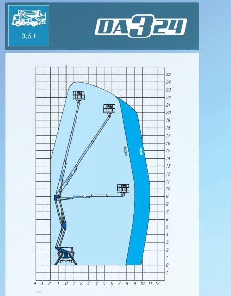 Felszereltség: ABS, szervokormány, turbó, teljes hidraulikus működés alulról és felülről, "A" típusú talpalás, forgatható kosár, motorleállítás és indítás a kosárból