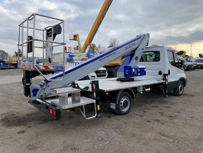 Leírás: Új, garanciával rendelkező Iveco Daily Oil&Steel Scorpion 18 18m gémkinyúlással rendelhető. Kérje ajánlatunkat!