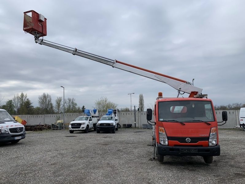 Nissan Cabstar Multitel 160 ALU DS kosaras autó 16 m gémkinyúlással eladó. Azonnal munkára fogható! Magyar papírokkal és friss emelővizsgával!