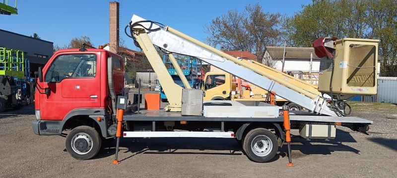 Nissan Cabstar Multitel 160 ALU DS kosaras autó 16 m gémkinyúlással eladó. Azonnal munkára fogható! Magyar papírokkal és friss emelővizsgával!
