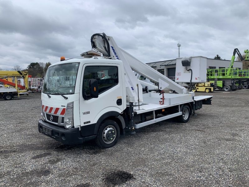 Nissan Cabstar Multitel 182 DS kosaras autó 18 m gémkinyúlással, 2027/10. hónapig érvényes műszakival, érvényes magyar dokumentumokkal eladó. Azonnal munkára fogható!