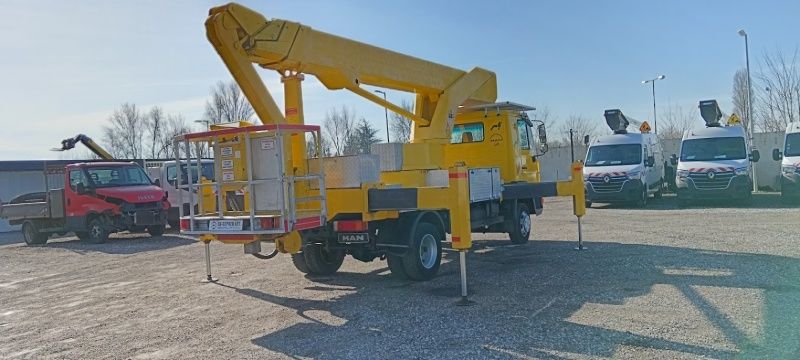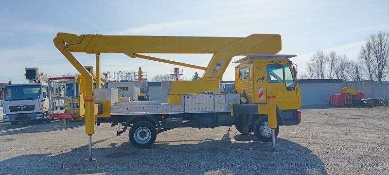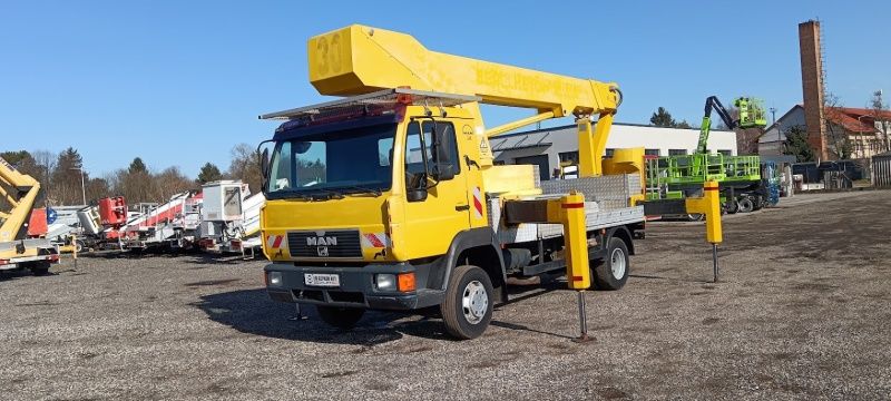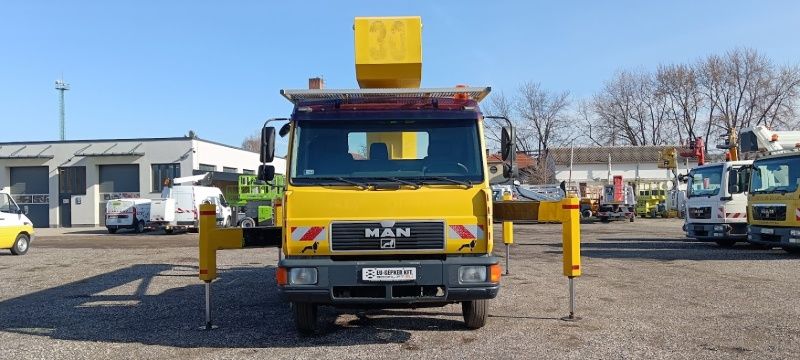 Ein MAN 8.163 Bison TKA 30 Hubarbeitsbühne mit 30 m Schließe ist käuflich! Status von Maschine ist gut, Hydraulische System und das Motor sind klar so der Wagen kann sofort arbeiten.