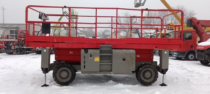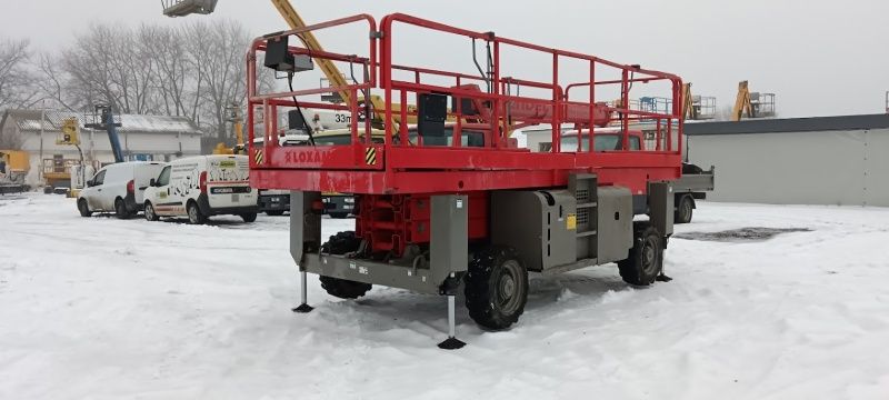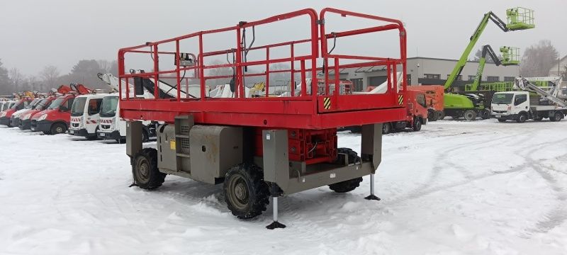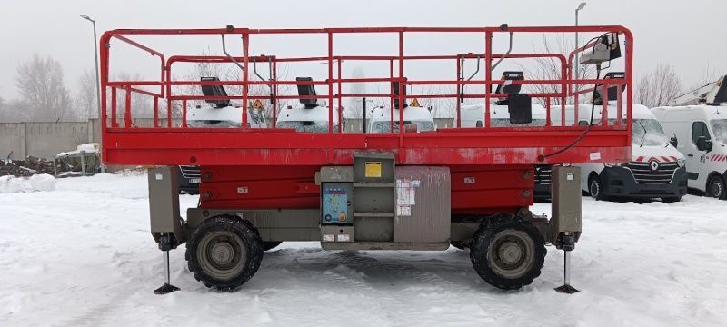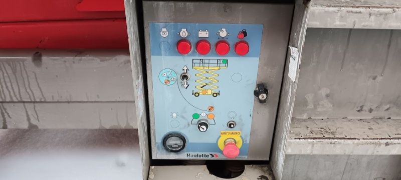 Description: scissor lift HAULOTTE, type: H 12 SXL 4x4 (diesel) with moveable pleateau, 700 kg lifting force (people / material), MOVEABLE PLEATEAU 2 x 1.000 mm (max. size platform: 7.300 x 1.900 mm)